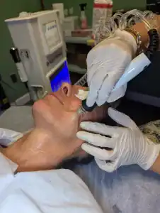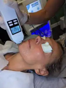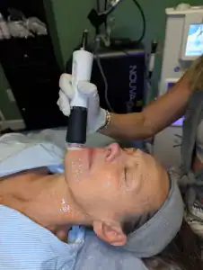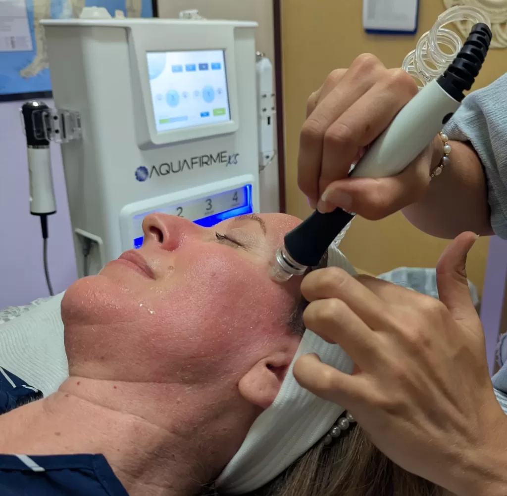 AquaFirmeXS is an amazing piece of equipment that stands at the forefront of aesthetic innovation. With this technological wonder, we can offer all natural medical-grade facials as an alternative to harsh chemical based peels and human based stem cell injections and fillers. This unique skin and hair restoration system employs three advanced technologies that work synergistically to cleanse, exfoliate, hydrate, and nourish. Each technology found on the AquaFirmeXS is on a separate handpiece. The system’s multifaceted approach ensures that every aspect of skin health is addressed, leaving you with a radiant glow and visibly rejuvenated skin!