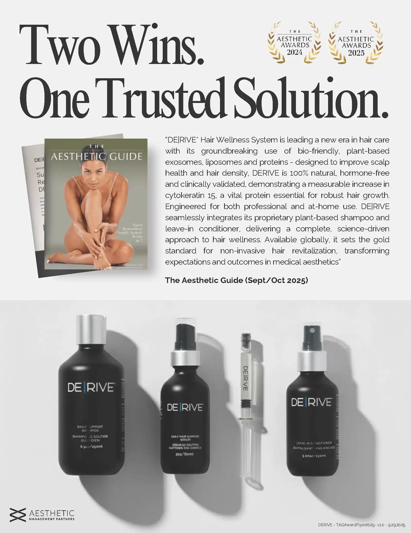 DERIVE Daily Hair Support System offers a breakthrough in hair and scalp health. DERIVE is a 100% natural plant-based, sulfate free, paraben free, cruelty-free, hormone-free, meticulously formulated system to support and nourish the scalp and support hair strands. This daily hair support system is safe and effective and suitable for all skin types.
